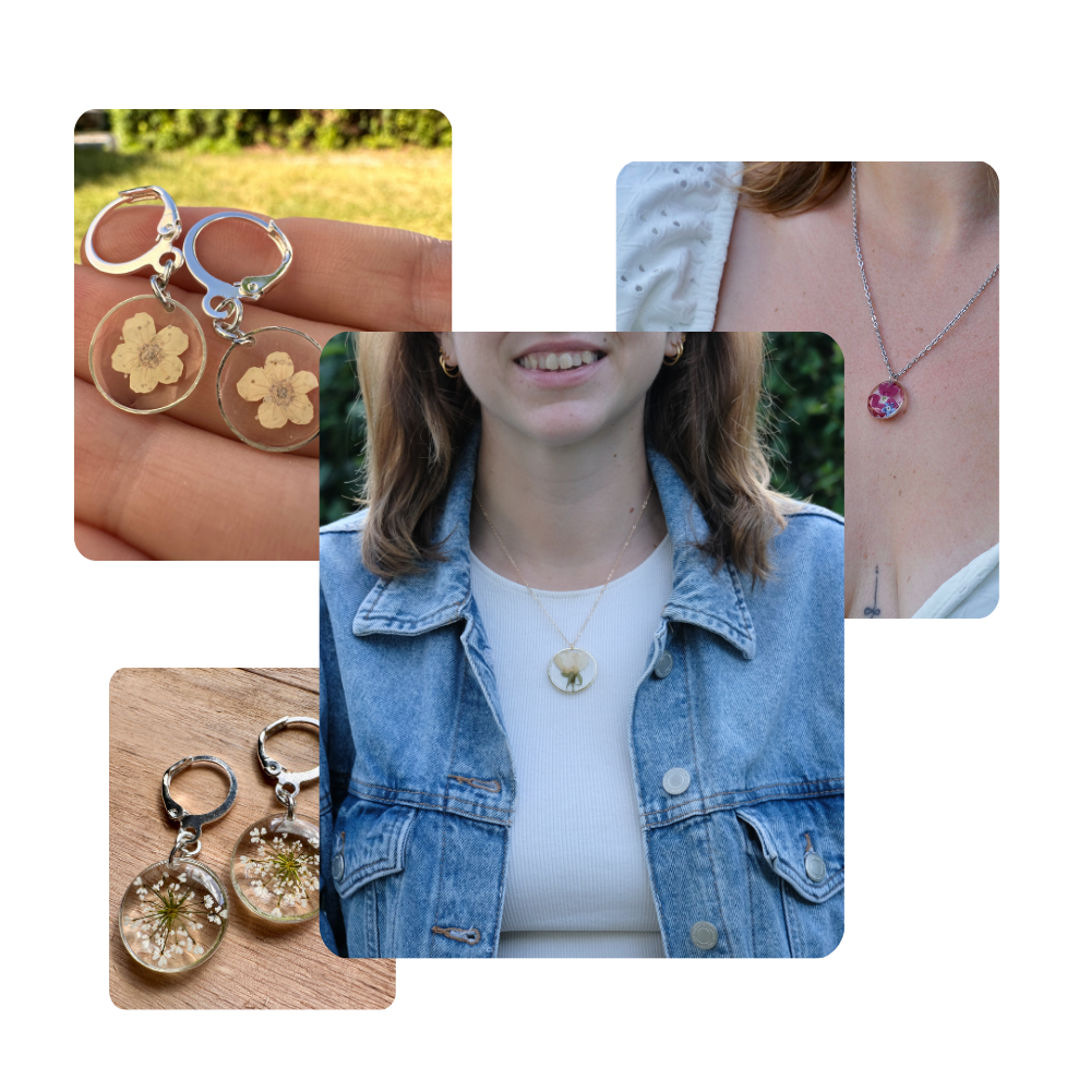 Handmade flower jewellery made with real pressed flowers collected on our travels. Each piece is lightweight and designed for effortless, everyday wear.